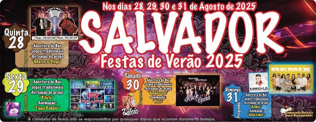O terceiro dia, sábado 30, abertura do bar, jogos tradicionais, e a noite será abrilhantada pelo “Grupo Band Acesso”, havendo depois animação noite dentro com “Dilcio”.